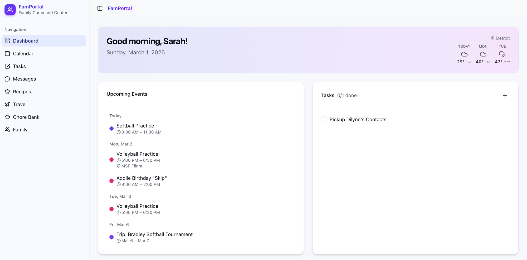 Everything app I found came at a cost, and either had too many features, or not the features I felt like I needed or wanted to spend money on. For context, we've got 3 kids all involved in club sports, and keeping track of where everyone needs to be is tough, and reminding extended family of where XYZ child is playing at any given moment is usually an afterthought. This gave me an idea – why not just make what I need?