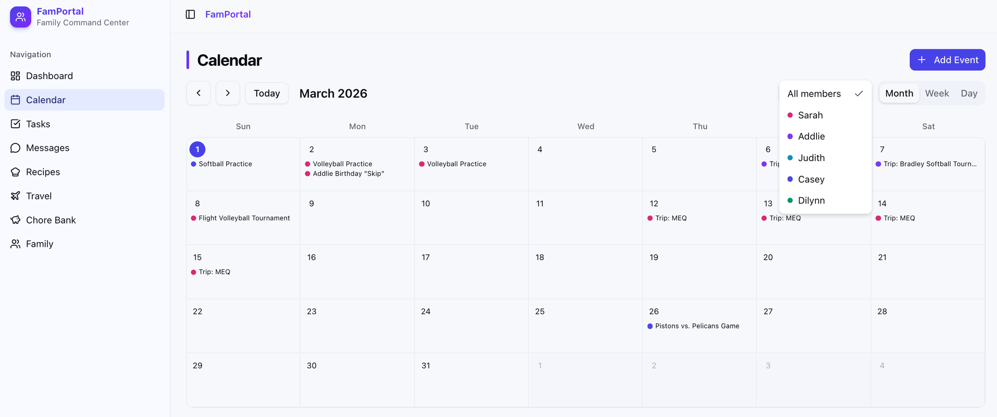- You need the ability to assign events to specific (or multiple) family members