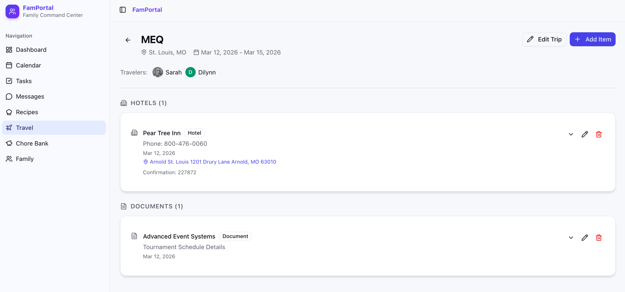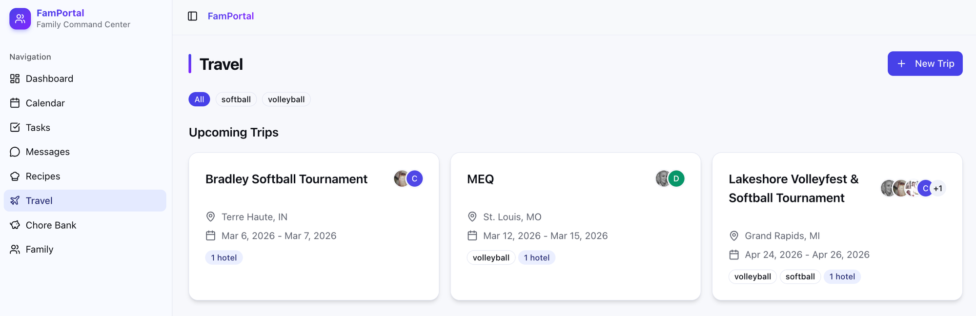 - We travel a lot for sports, so I needed the ability to create a "trip" event