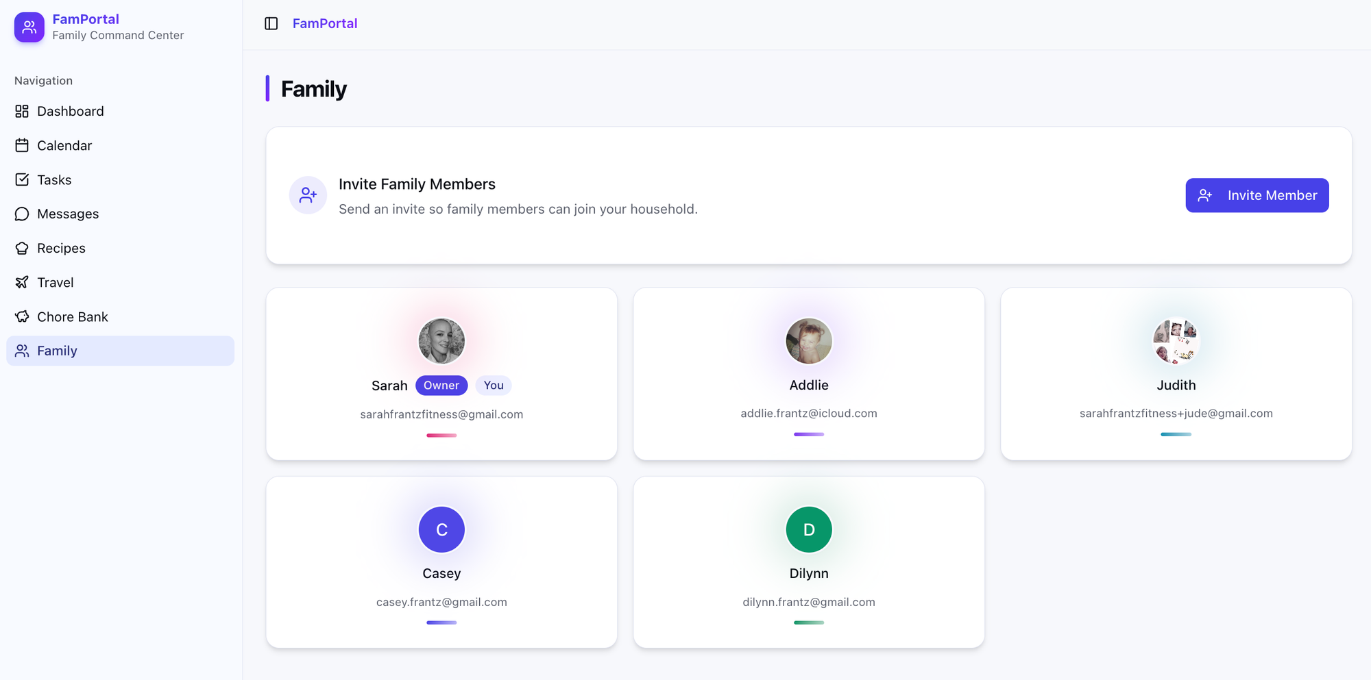 - Allow me to create a family "hub" of sorts, where I could invite members to my family hub – only those who are invited should have access to view things within the app