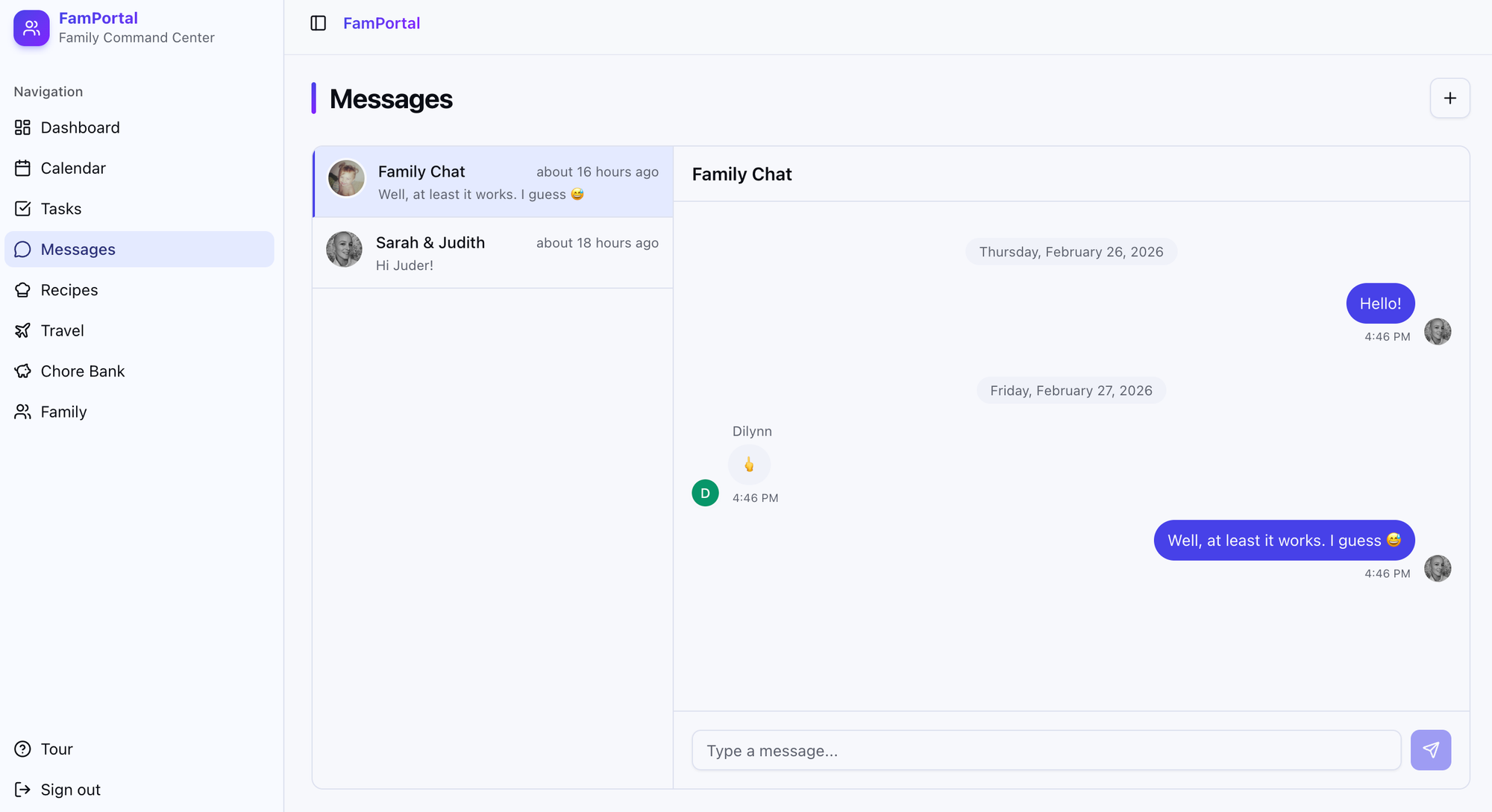 I also added a less exciting messaging system, which was more so for fun – because let's face it, the kids will just text me anyway. Dilynn wasn't excited about it.